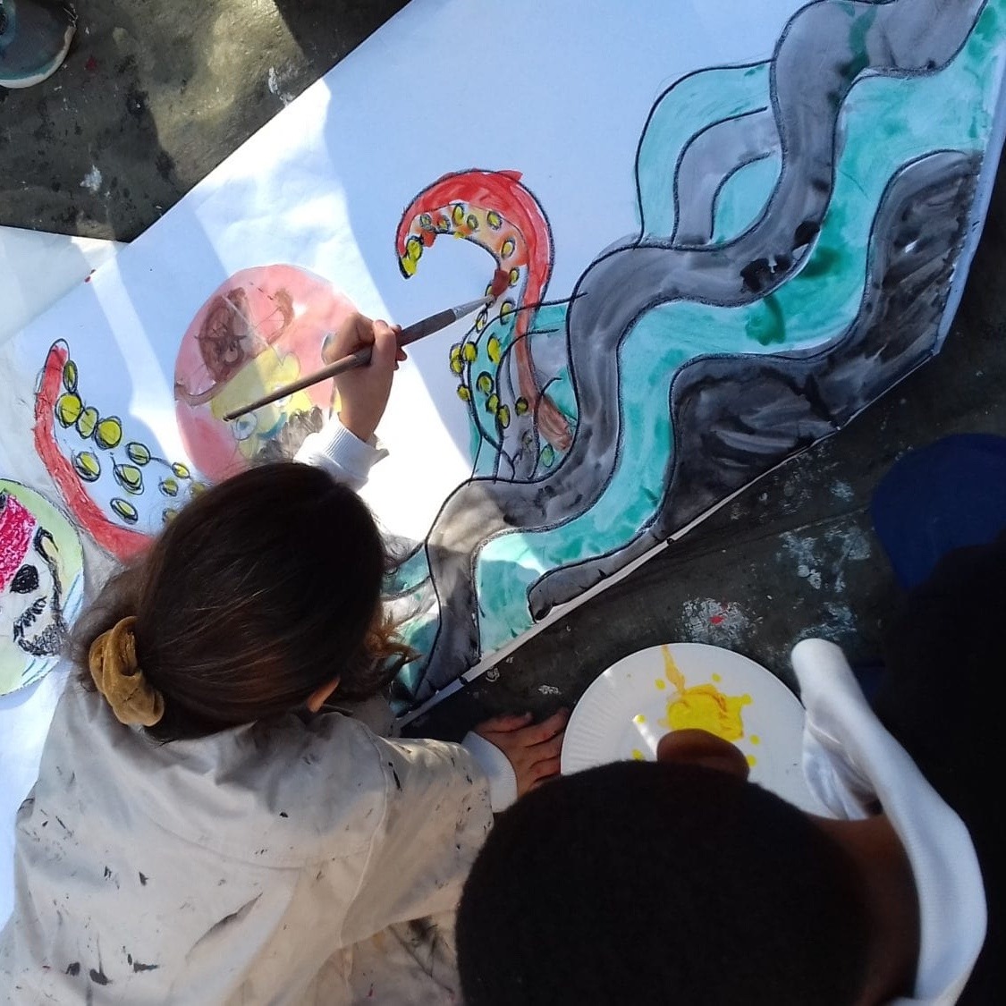 Pour permettre à formes et couleurs de jaillir sur de grandes feuilles de dessin, animez vous aussi des ateliers en pied d’immeuble.